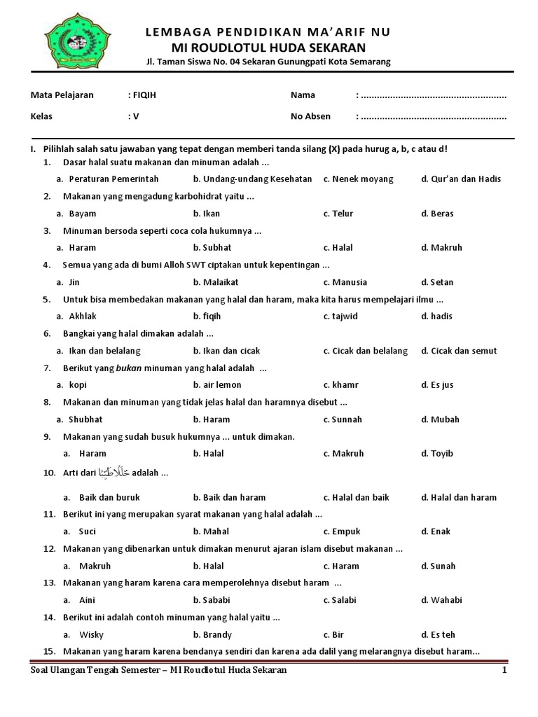 Pada kesempatan yang sama admin akan membagikan soal uts fiqih kelas 6 semester 1. Kak hinda akan menuliskan soalnya secara campur, ada yang sesuai dengan bab ada yang tidak. Dalam soal fiqih ini jumlah soal. Download soal pas genap kelas 1 lengkap. Download prediksi usbn 2019 lengkap.pdf 3.